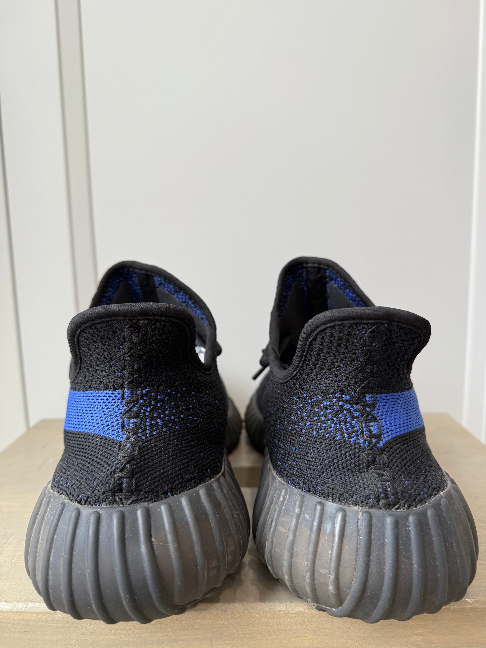 Black Primeknit upper with bold blue SPLY-350 stripe and Boost cushioning for comfort. Pre-owned in good condition with normal wear; a standout Yeezy colorway that’s clean, versatile, and easy to style.